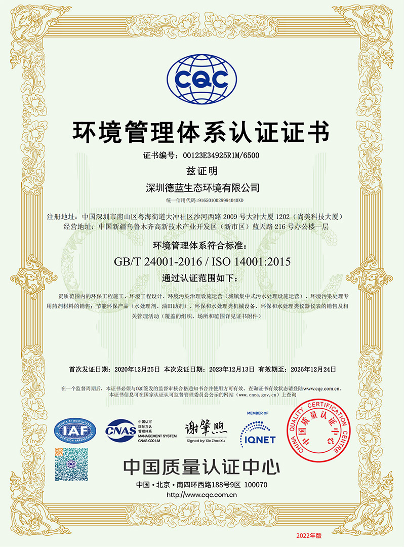 環(huán)境管理體系認(rèn)證證書